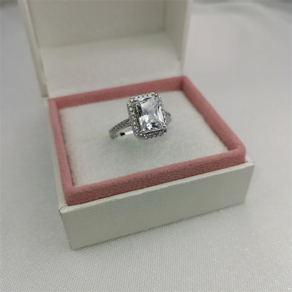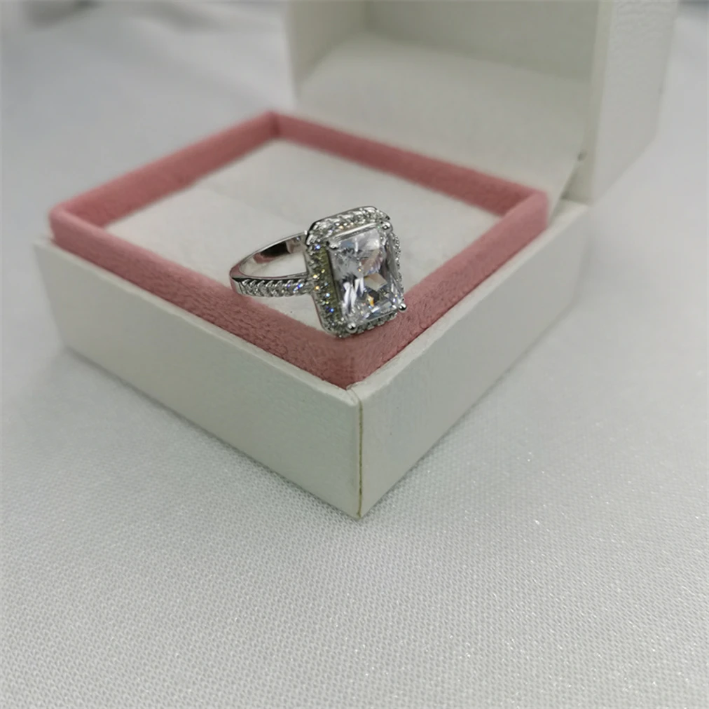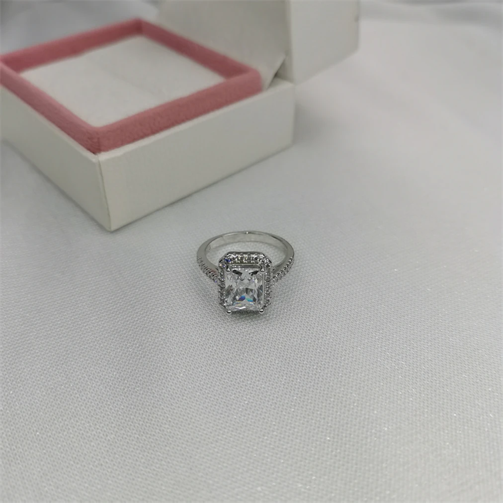 Fine Women's Classic Baguette Step Cut Moissanite Prong Setting 10K White Gold Certified Ring